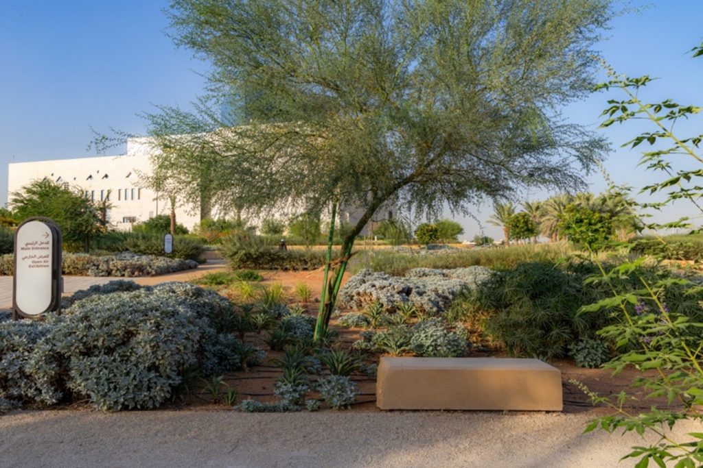 Native and adaptive plants echo the textures and tones of Wadi Hanifah, grounding the site in its natural context while responding to Riyadh’s arid climate.